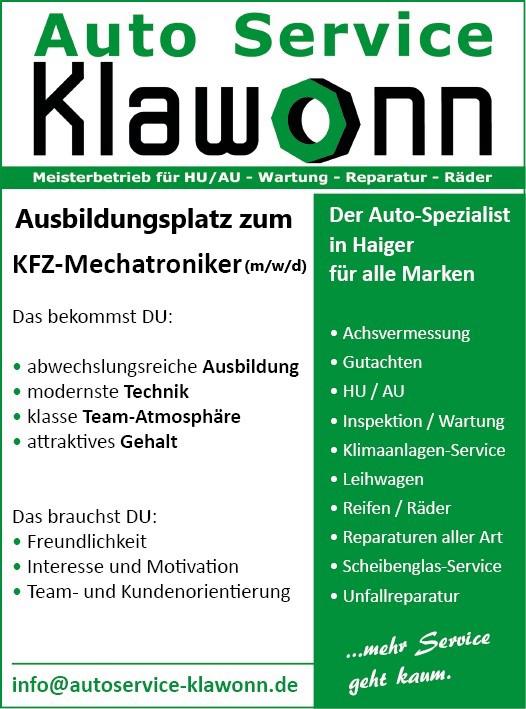 Auto Service Klawonn ist seit Jahren für einen wachsenden Kundenkreis der kompetente Partner rund ums Auto. Unsere moderne Werkstatt finden Sie verkehrsgünstig gelegen zwischen Haiger und Haiger-Allendorf.